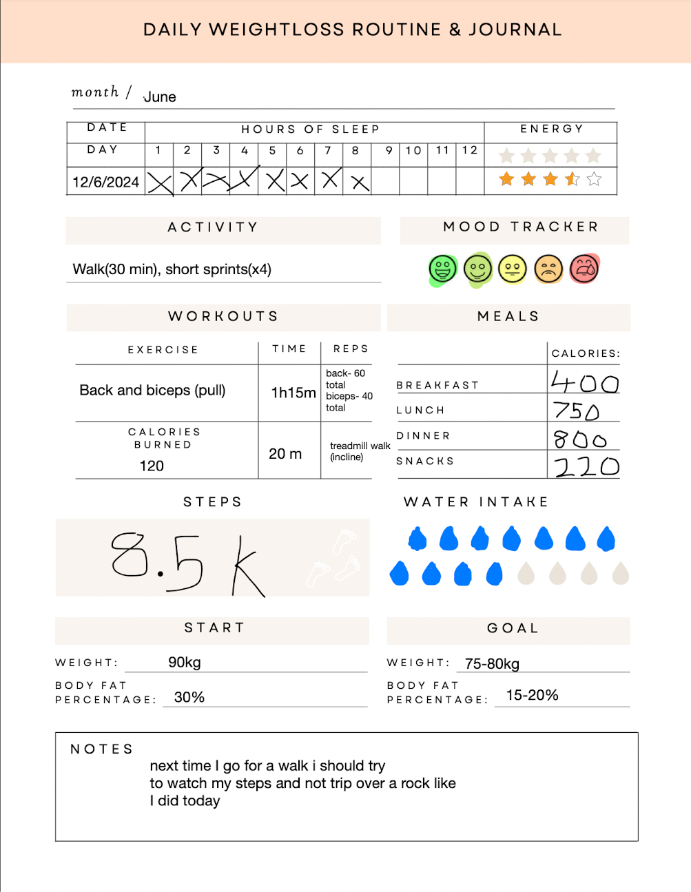 - Daily exercise log